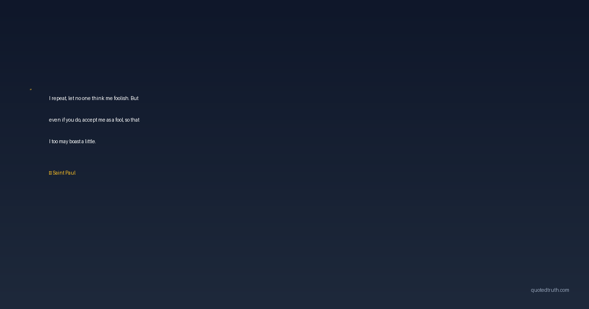 I repeat, let no one think me foolish. But even if you do, accept me as a fool, so that I too may boast a little.