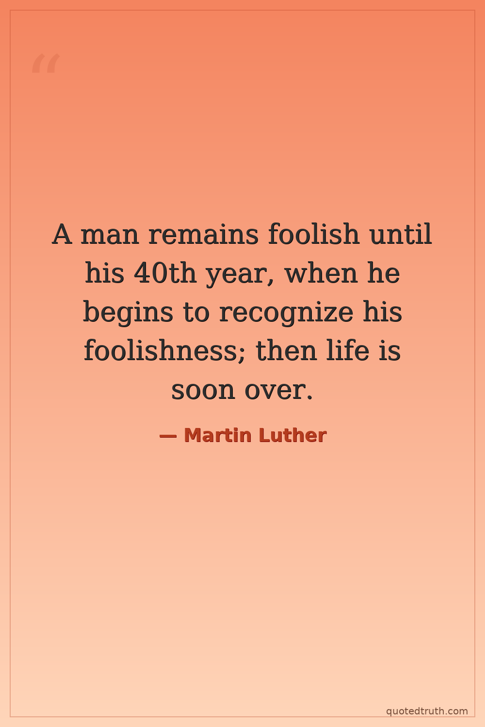 A man remains foolish until his 40th year, when he begins to recognize his foolishness; then life is soon over.