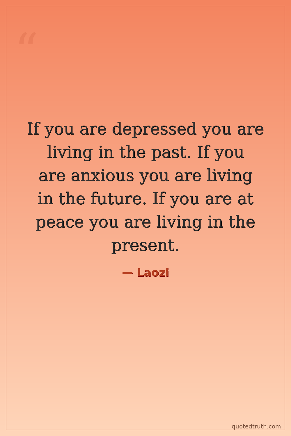 If you are depressed you are living in the past. If you are anxious you are living in the future. If you are at peace you are living in the present.