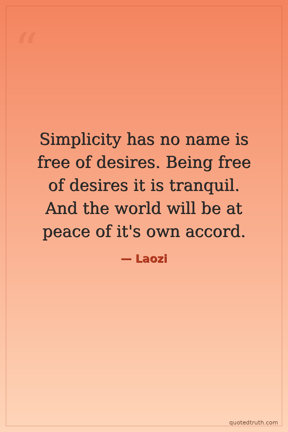 Simplicity has no name is free of desires. Being free of desires it is tranquil. And the world will be at peace of it's own accord.