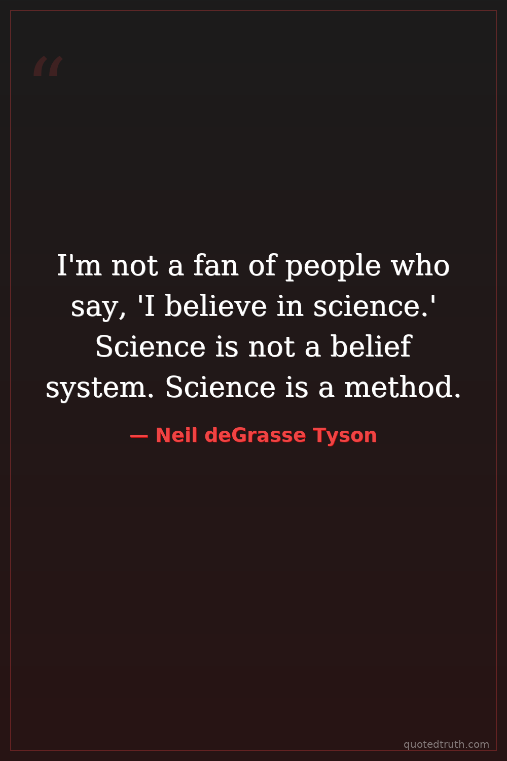 I'm not a fan of people who say, 'I believe in science.' Science is not a belief system. Science is a method.