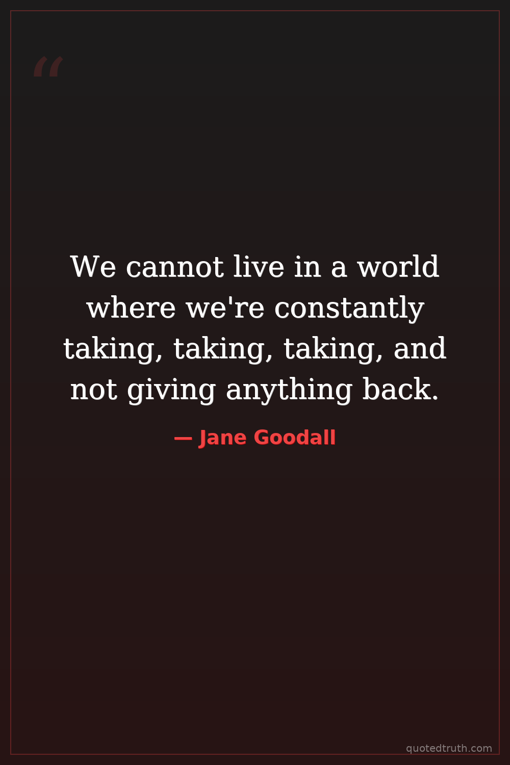 We cannot live in a world where we're constantly taking, taking, taking, and not giving anything back.