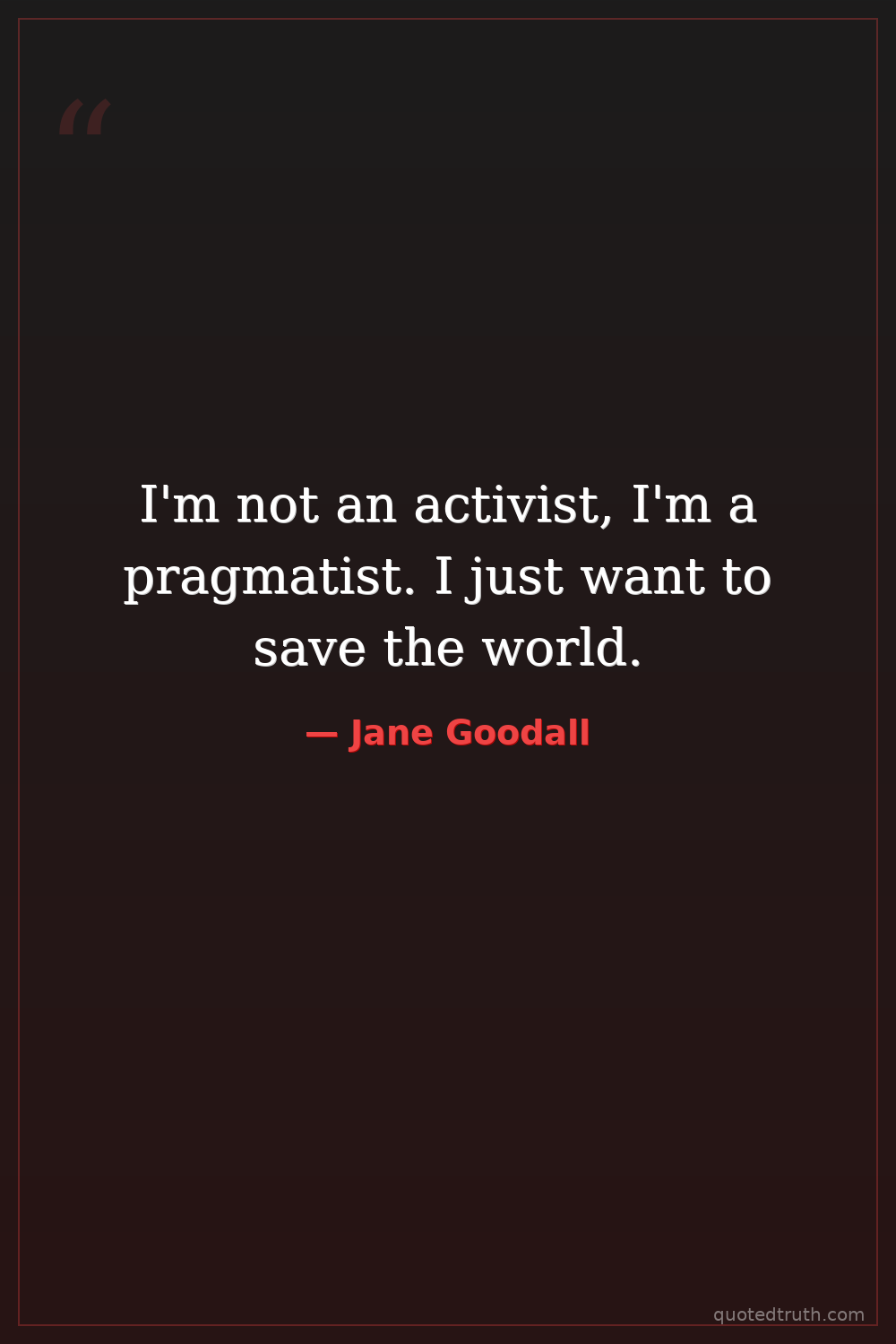 I'm not an activist, I'm a pragmatist. I just want to save the world.