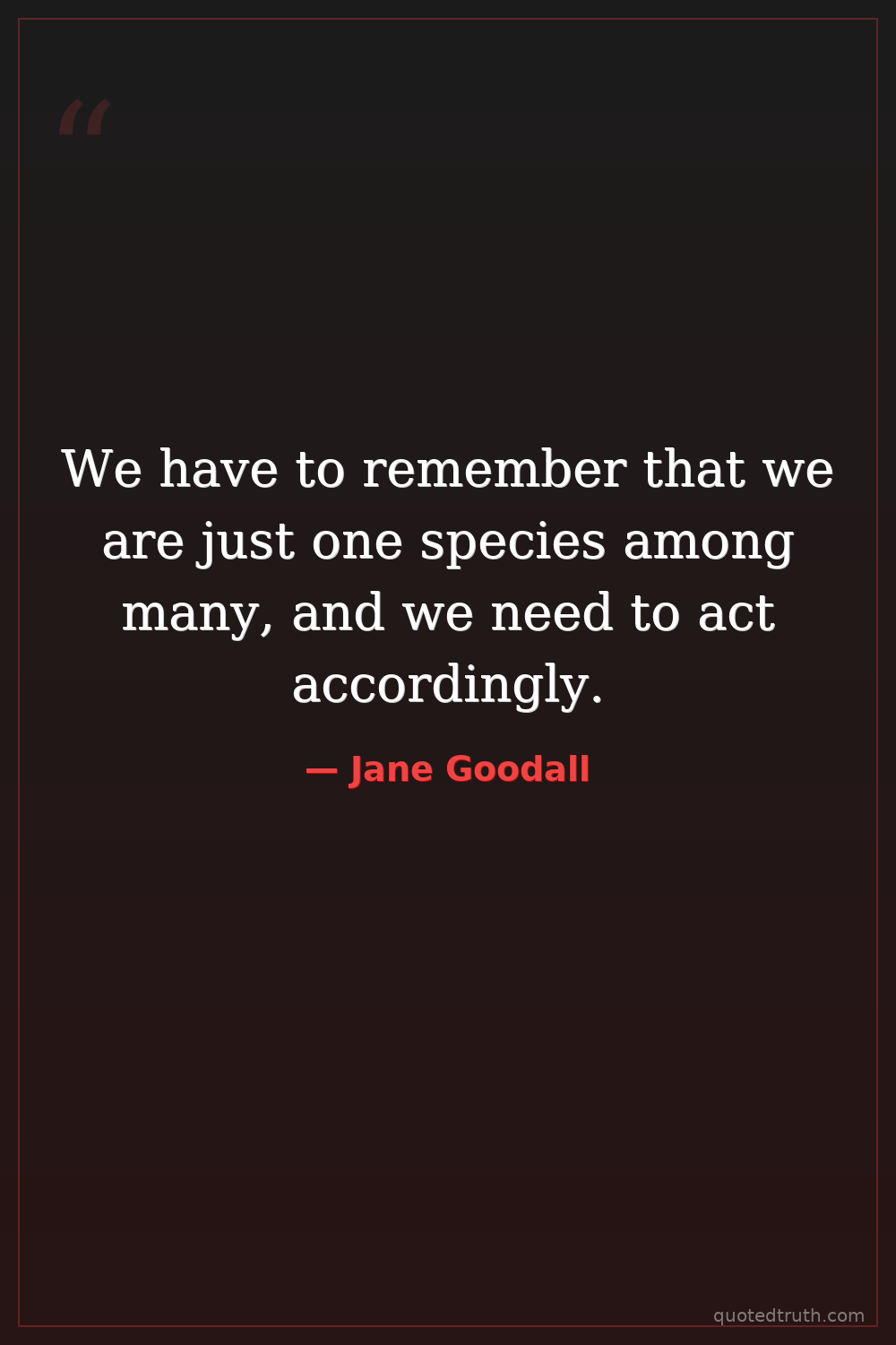 We have to remember that we are just one species among many, and we need to act accordingly.