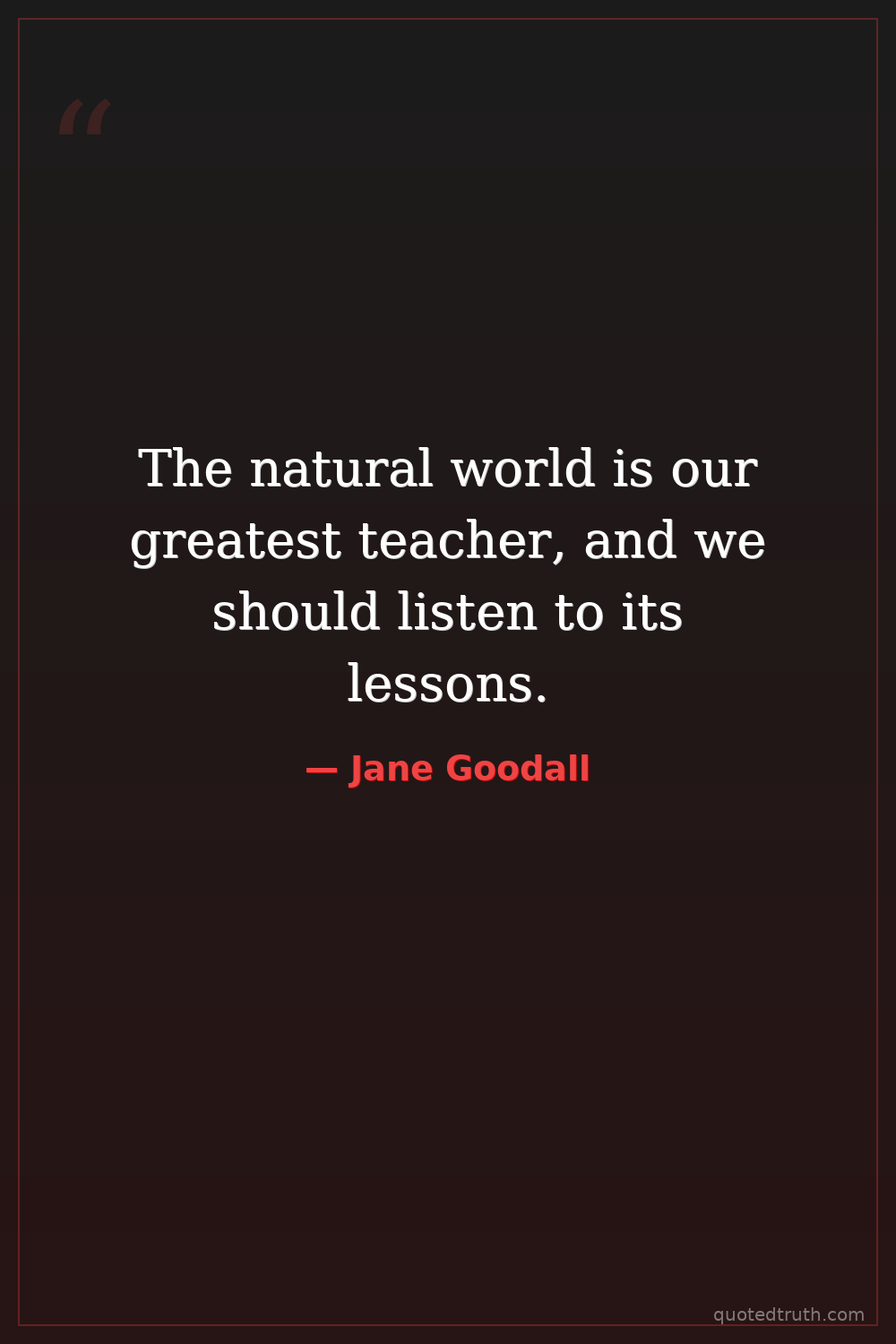The natural world is our greatest teacher, and we should listen to its lessons.