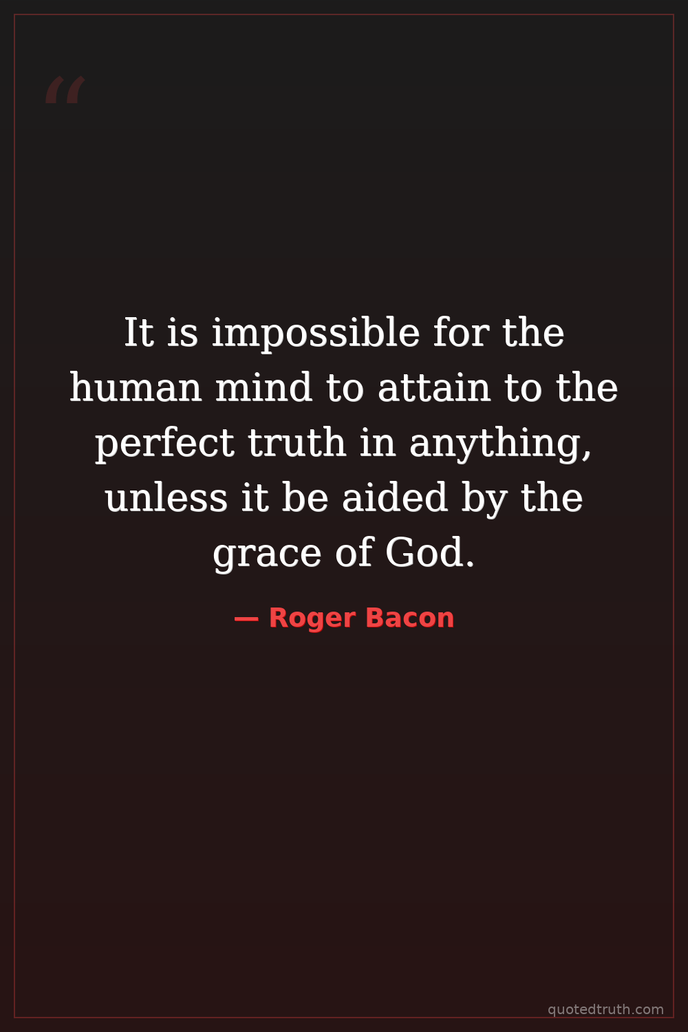 It is impossible for the human mind to attain to the perfect truth in anything, unless it be aided by the grace of God.