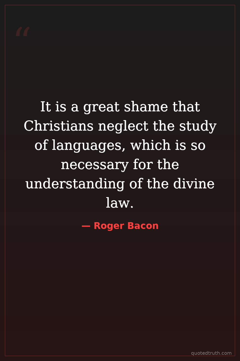 It is a great shame that Christians neglect the study of languages, which is so necessary for the understanding of the divine law.