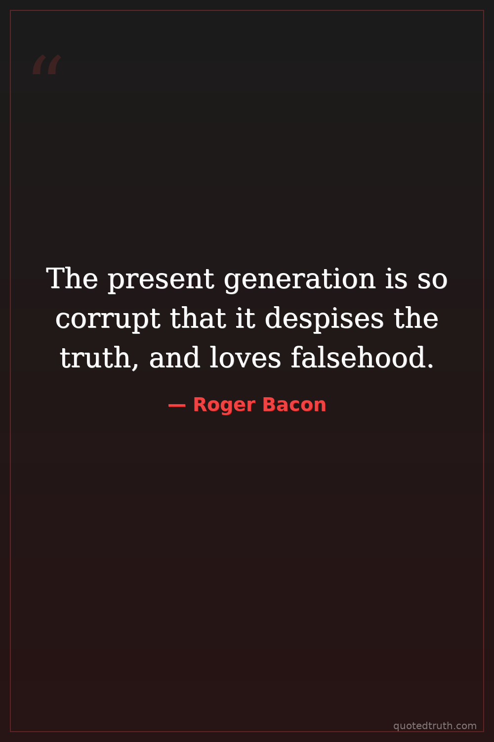 The present generation is so corrupt that it despises the truth, and loves falsehood.