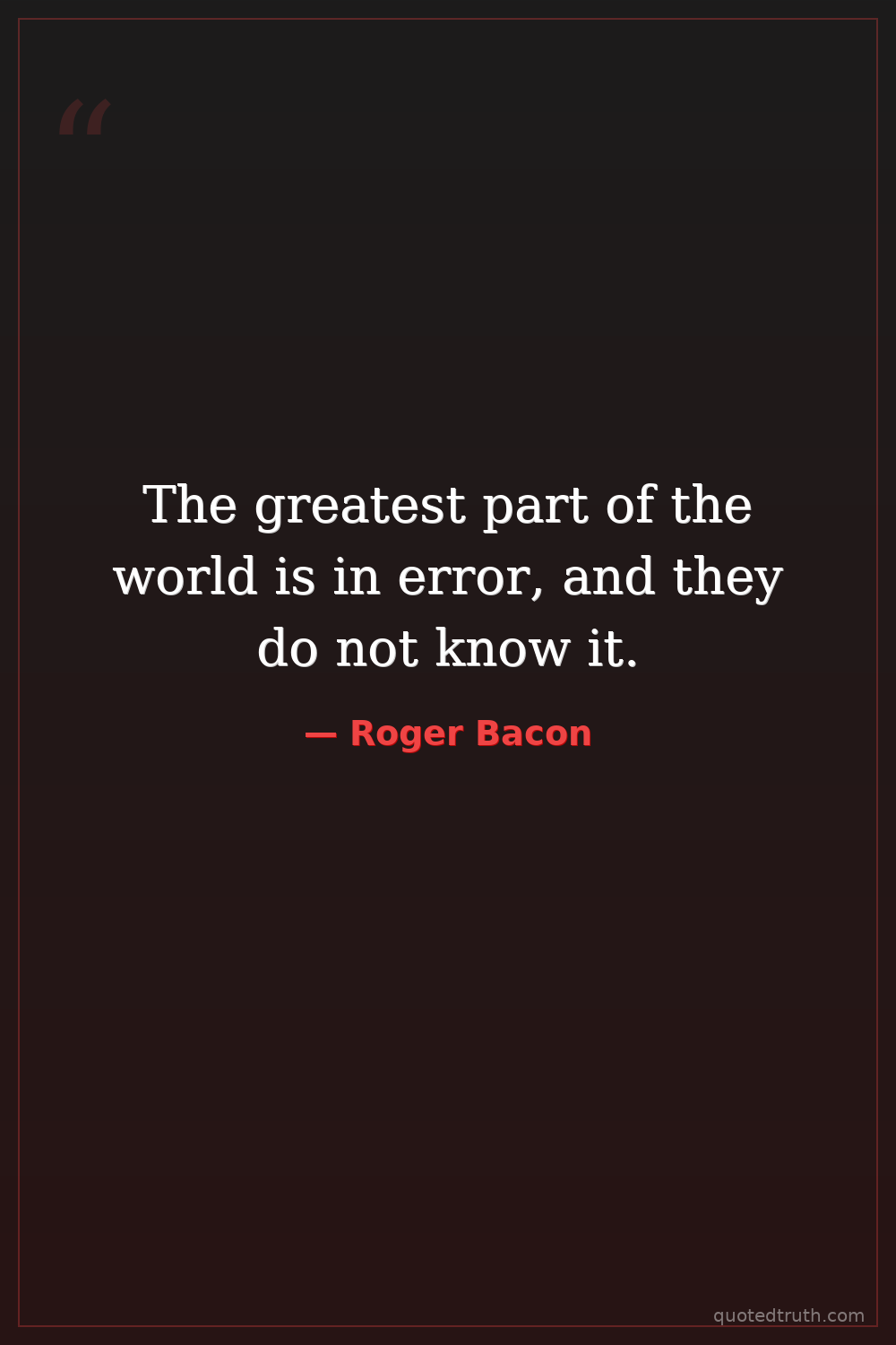 The greatest part of the world is in error, and they do not know it.