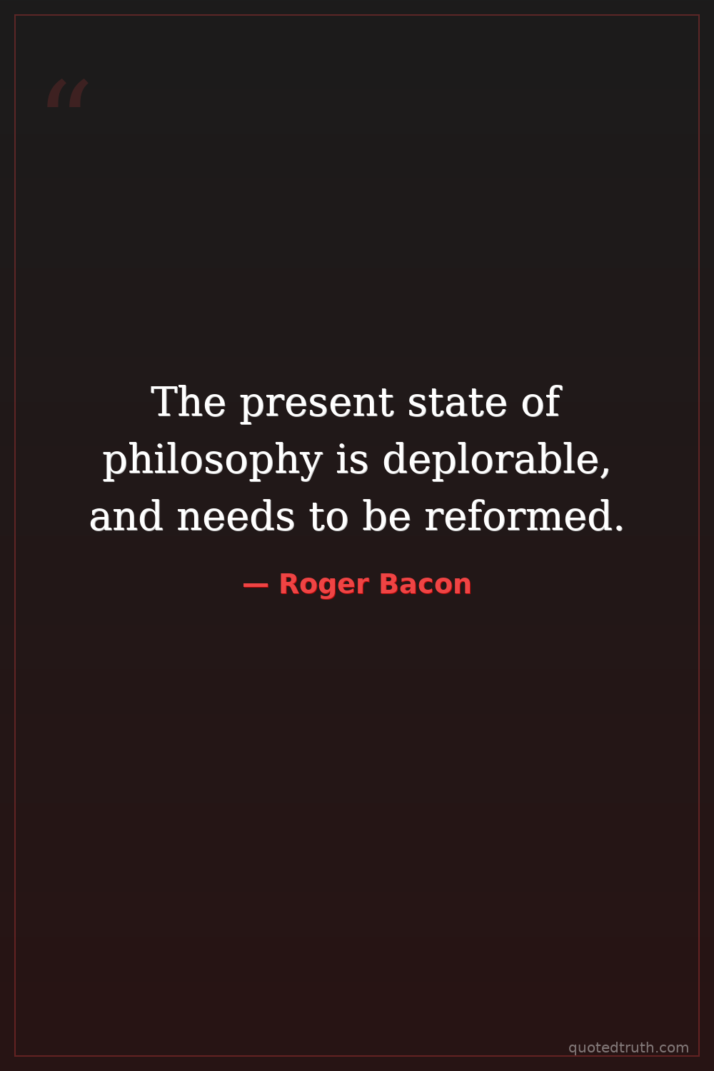 The present state of philosophy is deplorable, and needs to be reformed.