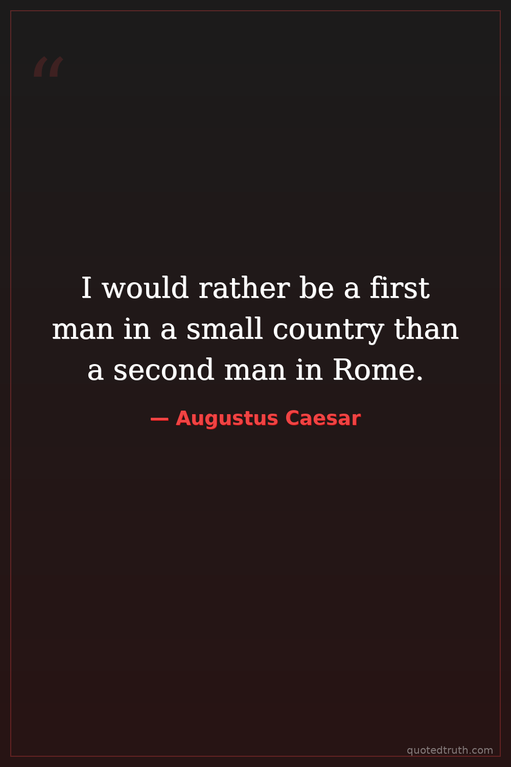 I would rather be a first man in a small country than a second man in Rome.