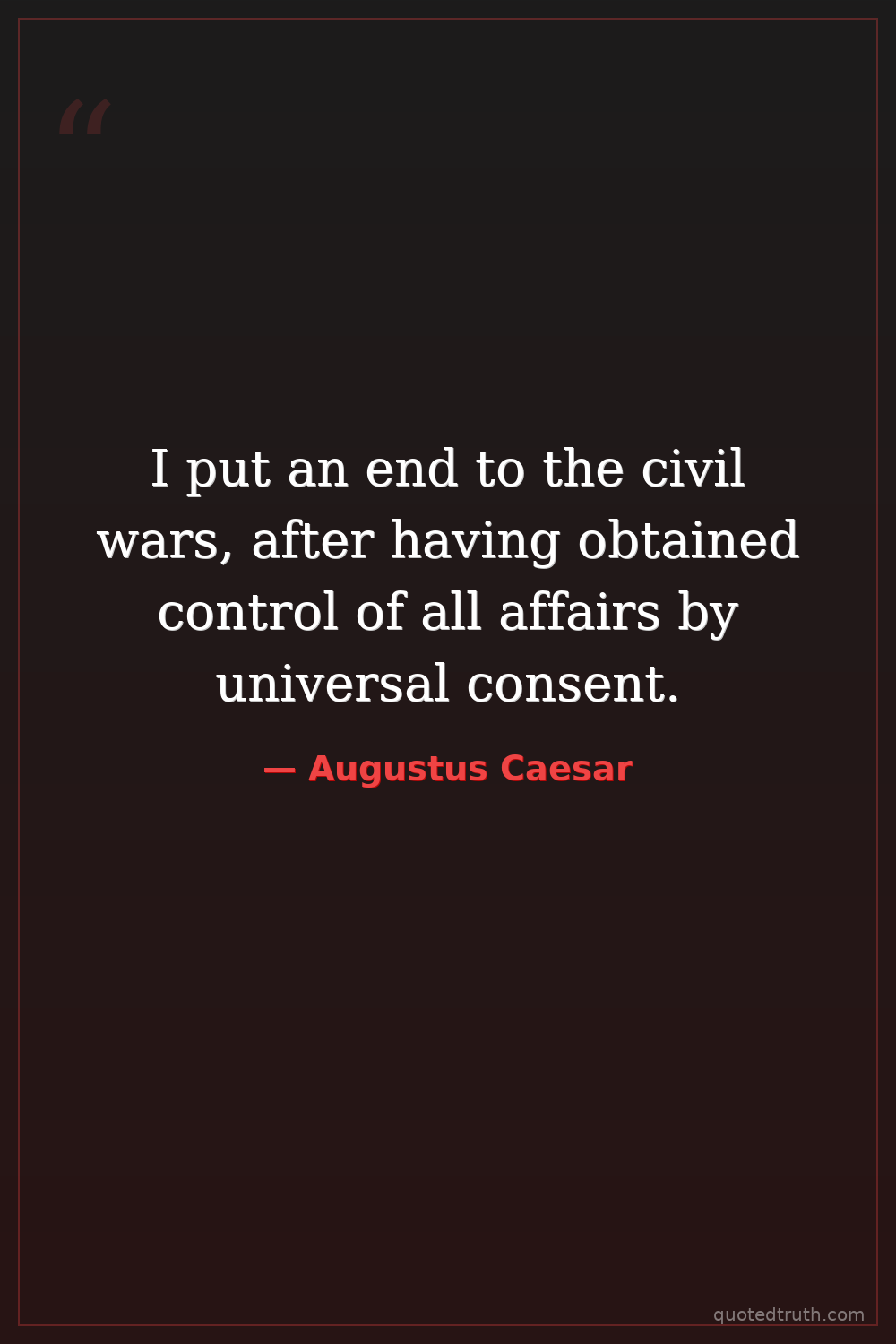 I put an end to the civil wars, after having obtained control of all affairs by universal consent.