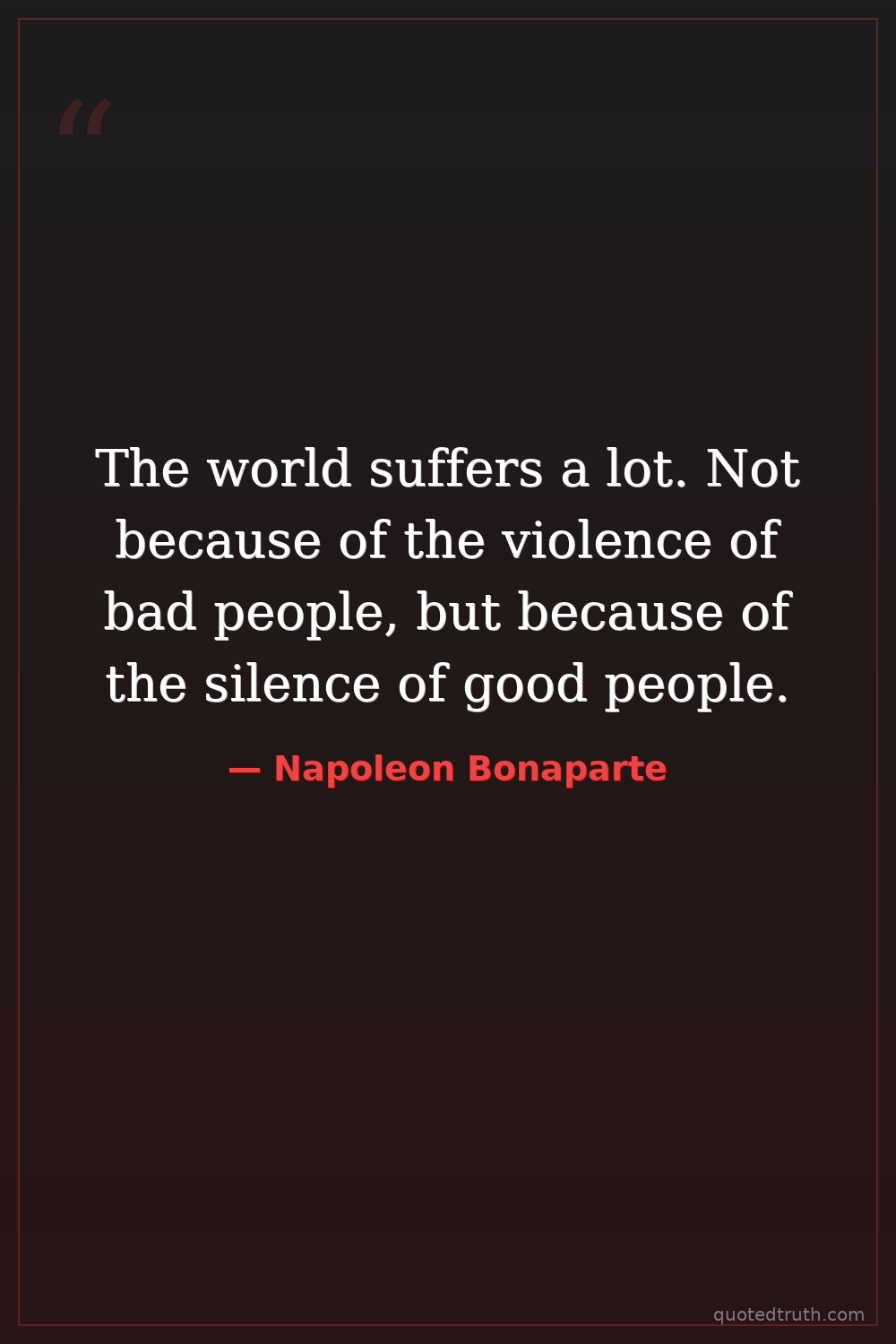 The world suffers a lot. Not because of the violence of bad people, but because of the silence of good people.