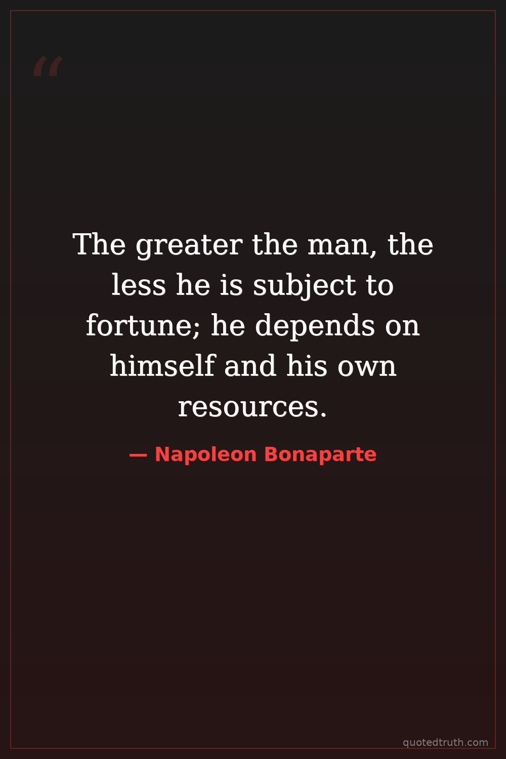 The greater the man, the less he is subject to fortune; he depends on himself and his own resources.