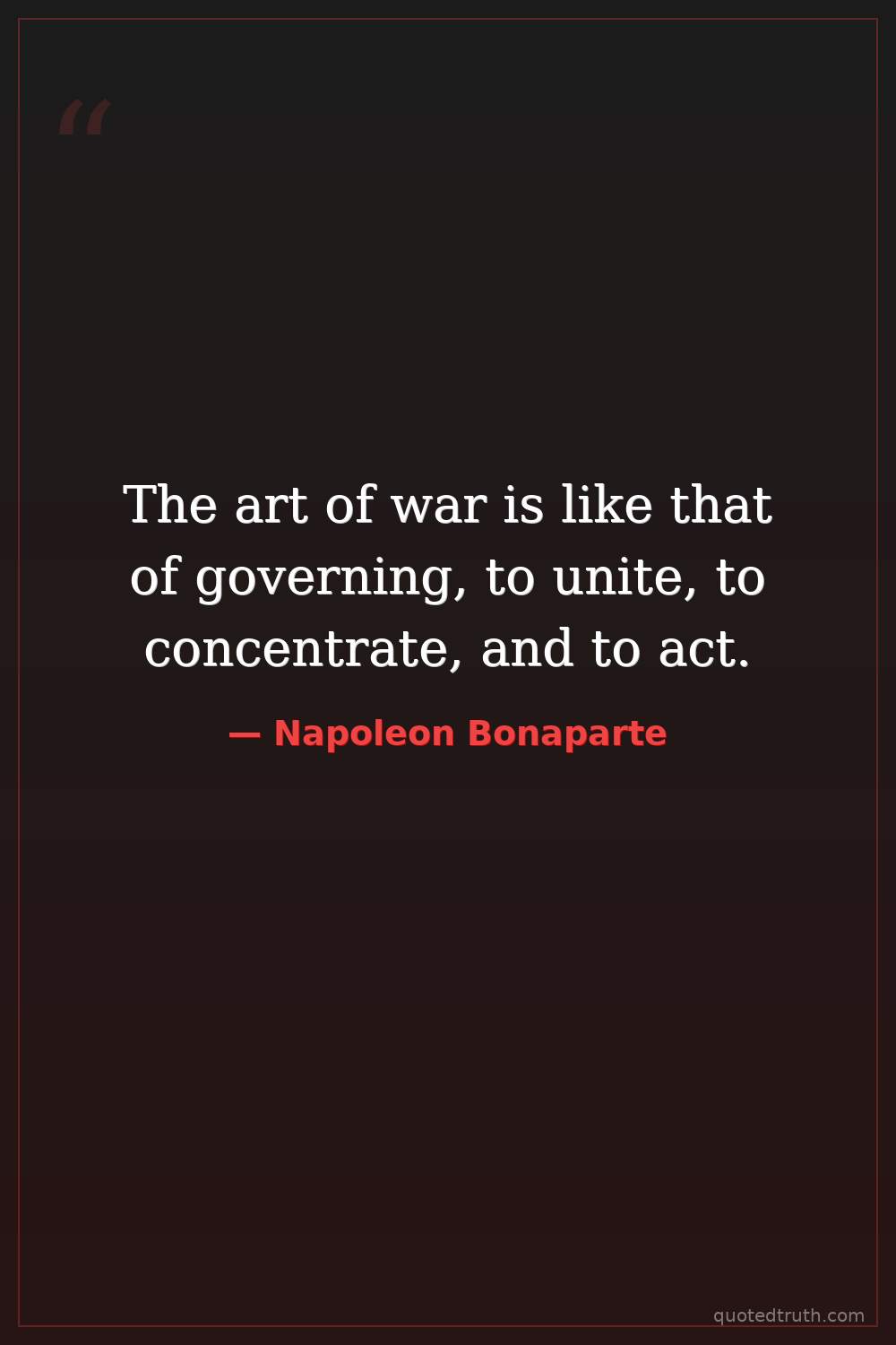 The art of war is like that of governing, to unite, to concentrate, and to act.