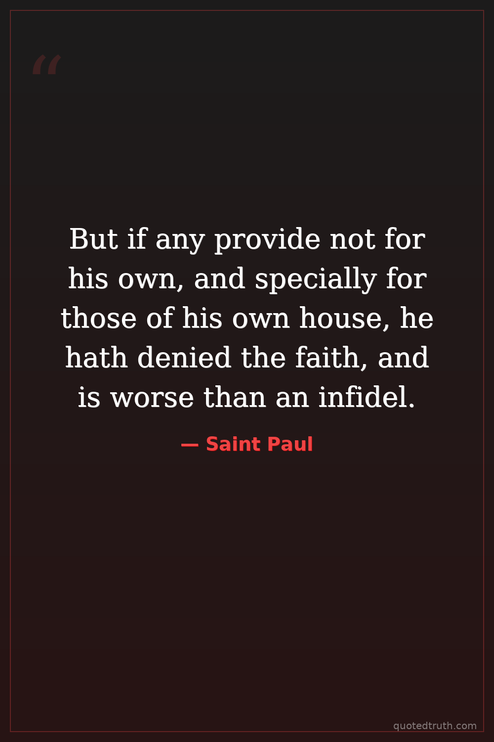 But if any provide not for his own, and specially for those of his own house, he hath denied the faith, and is worse than an infidel.