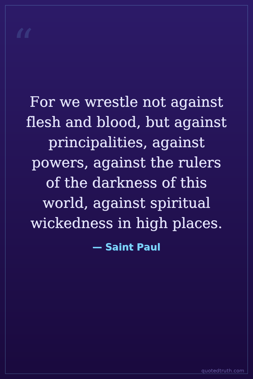 For we wrestle not against flesh and blood, but against principalities, against powers, against the rulers of the darkness of this world, against spiritual wickedness in high places.