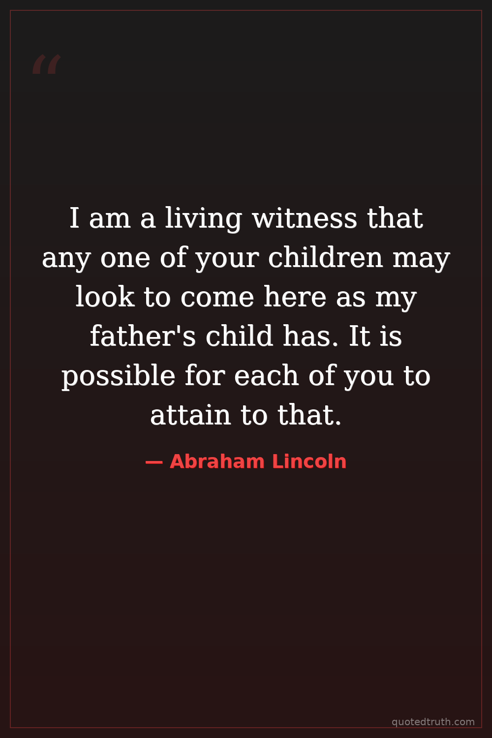 I am a living witness that any one of your children may look to come here as my father's child has. It is possible for each of you to attain to that.