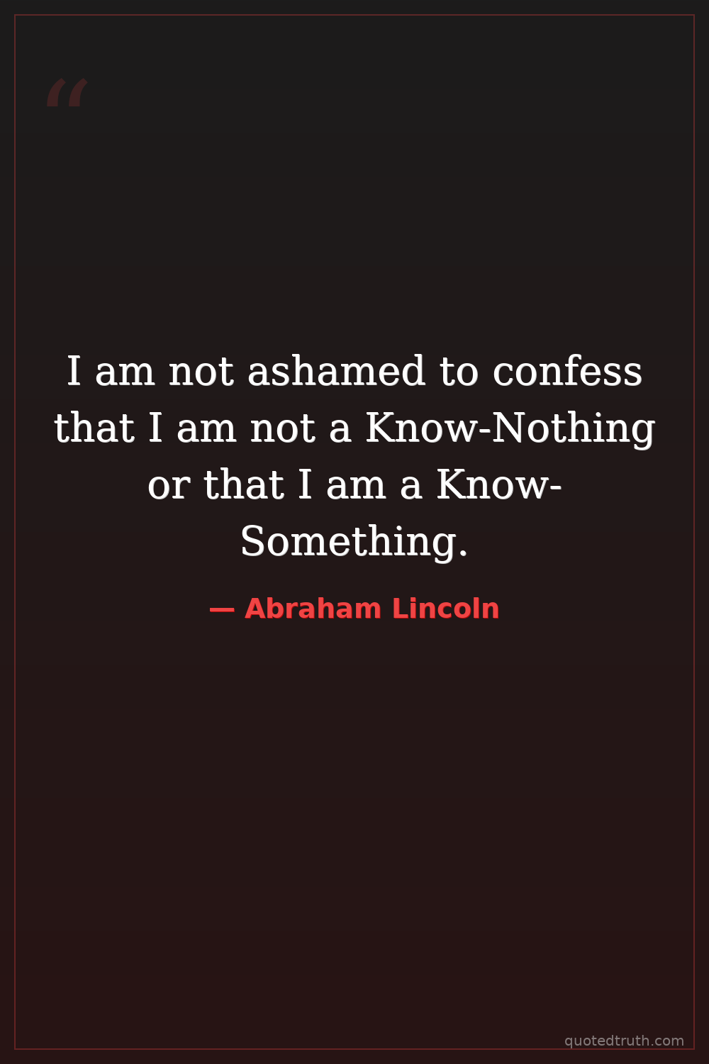 I am not ashamed to confess that I am not a Know-Nothing or that I am a Know-Something.