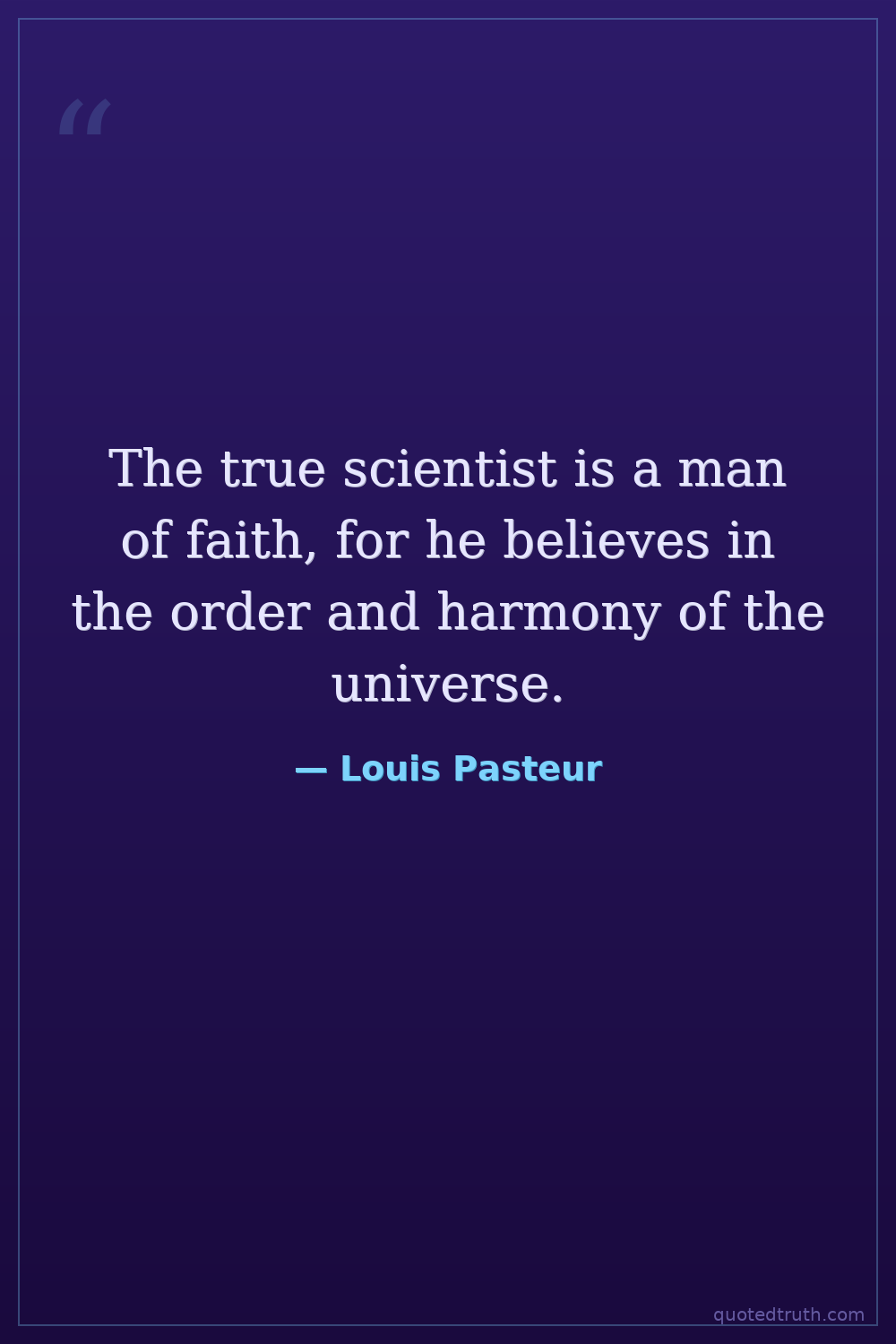 The true scientist is a man of faith, for he believes in the order and harmony of the universe.