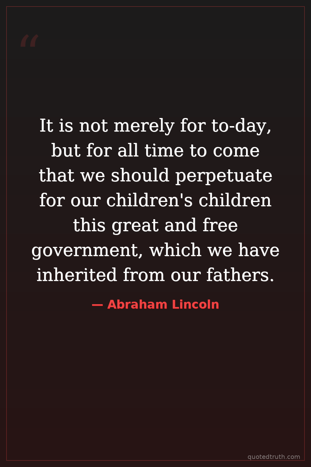 It is not merely for to-day, but for all time to come that we should perpetuate for our children's children this great and free government, which we have inherited from our fathers.