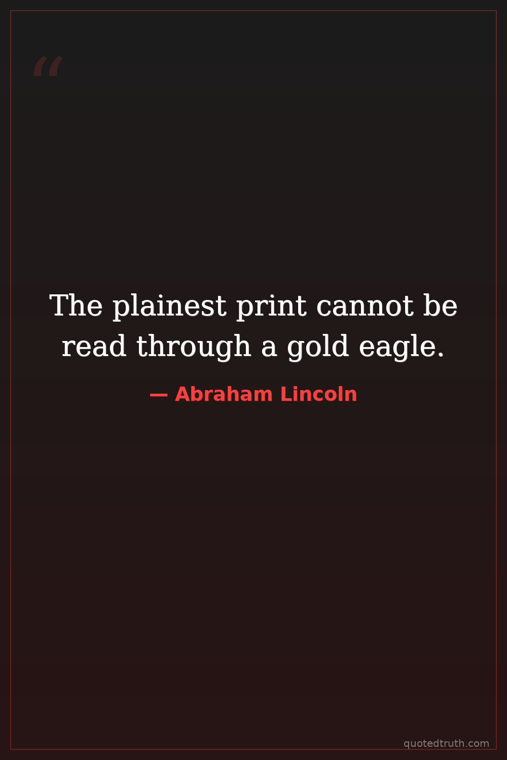 The plainest print cannot be read through a gold eagle.