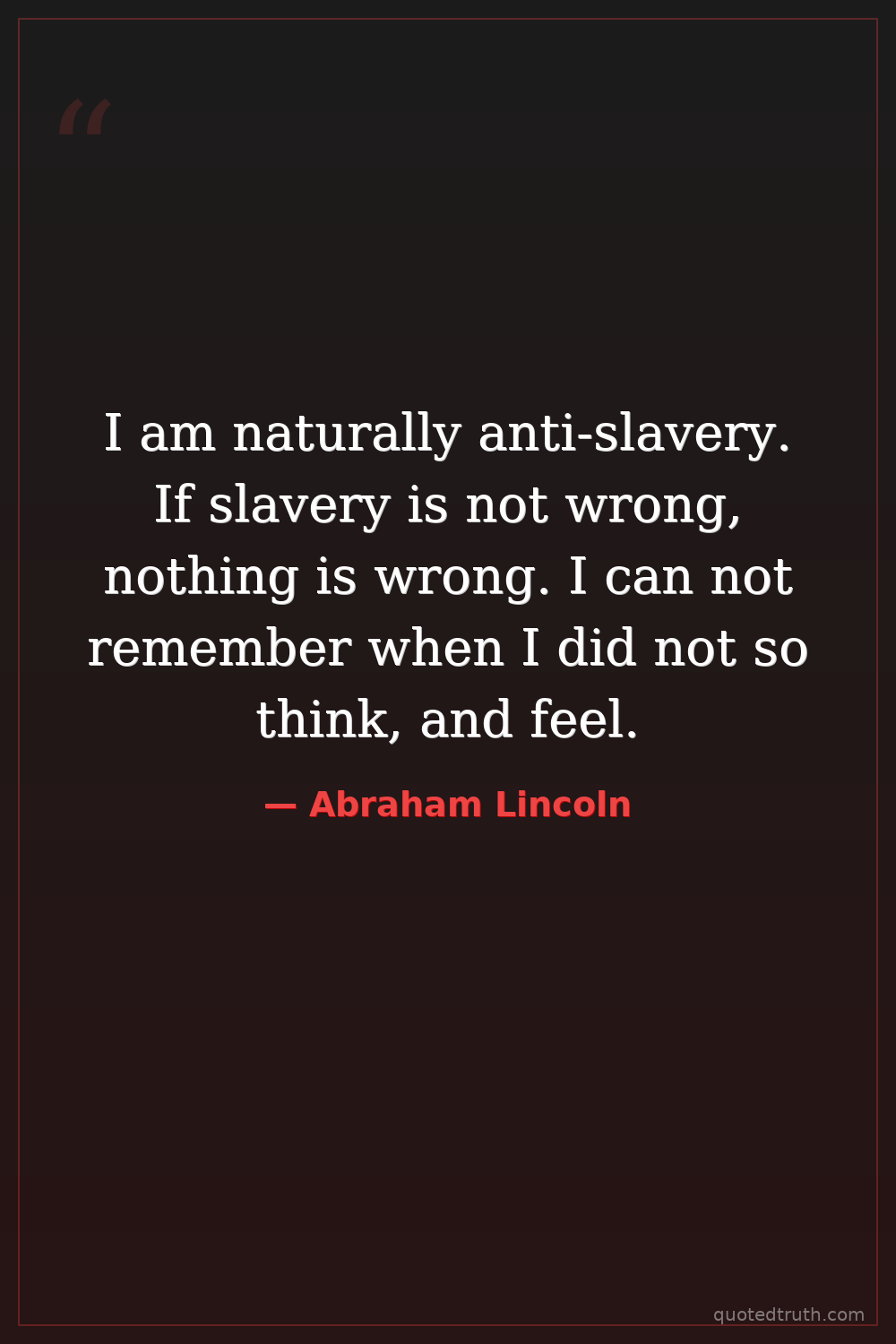 I am naturally anti-slavery. If slavery is not wrong, nothing is wrong. I can not remember when I did not so think, and feel.