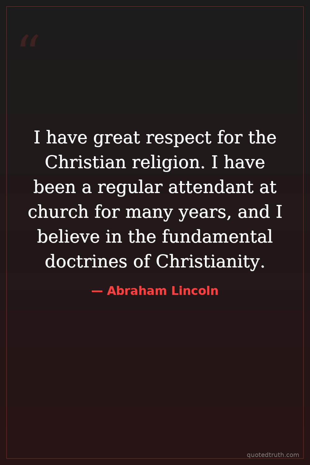 I have great respect for the Christian religion. I have been a regular attendant at church for many years, and I believe in the fundamental doctrines of Christianity.