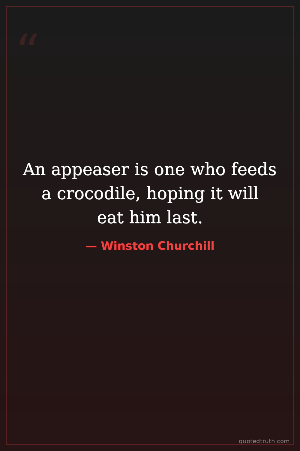 An appeaser is one who feeds a crocodile, hoping it will eat him last.