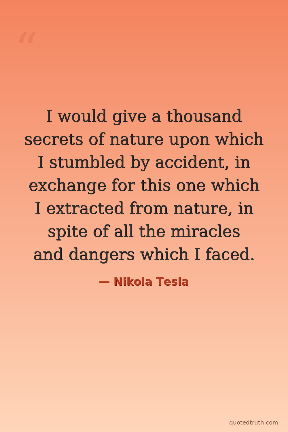 I would give a thousand secrets of nature upon which I stumbled by accident, in exchange for this one which I extracted from nature, in spite of all the miracles and dangers which I faced.