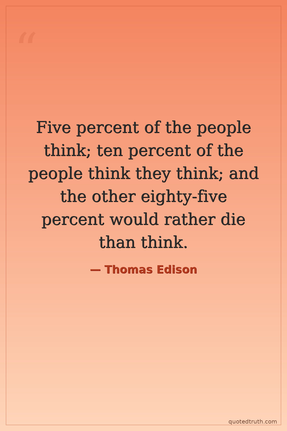 Five percent of the people think; ten percent of the people think they think; and the other eighty-five percent would rather die than think.