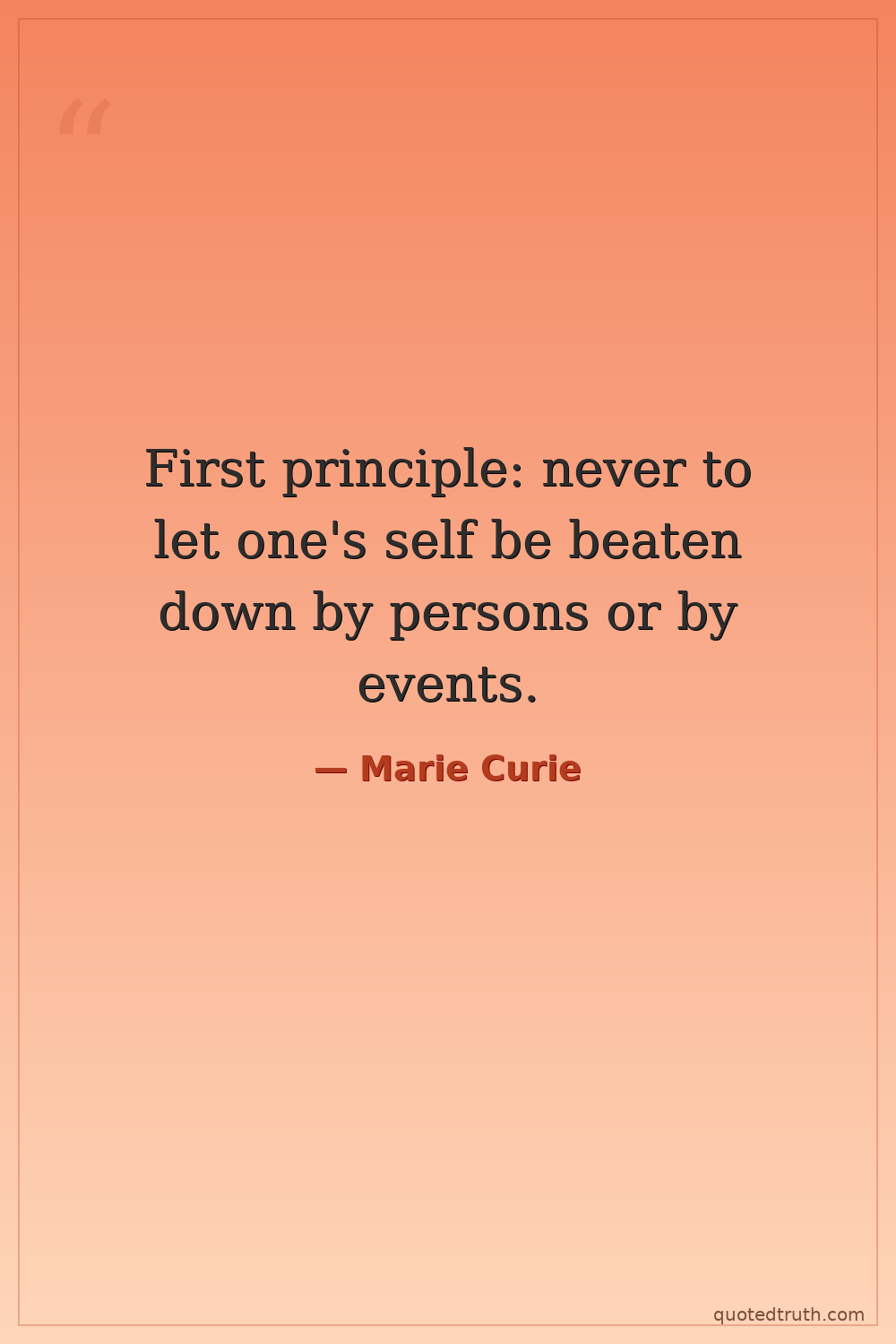 First principle: never to let one's self be beaten down by persons or by events.