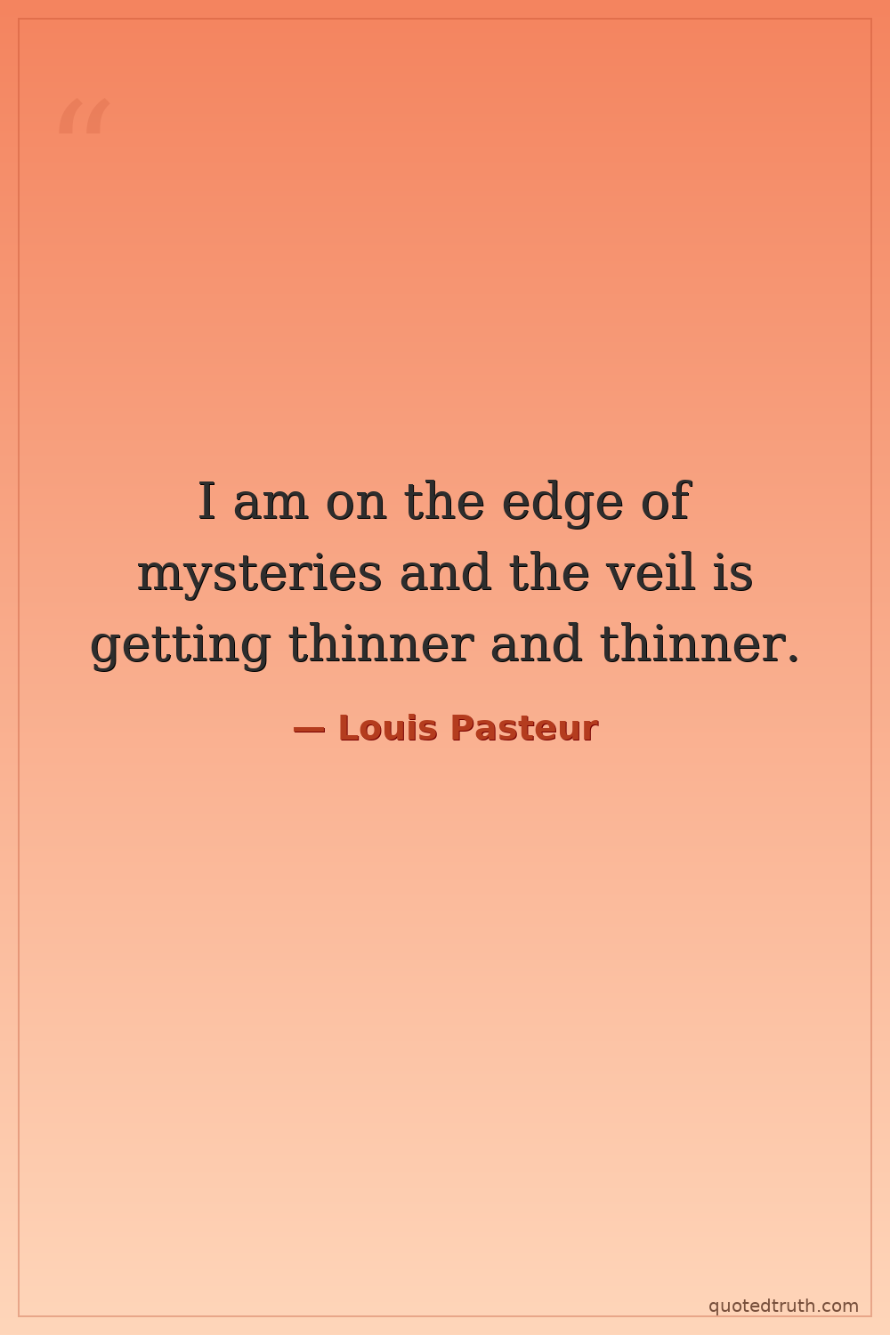 I am on the edge of mysteries and the veil is getting thinner and thinner.