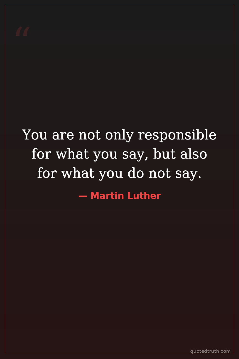 You are not only responsible for what you say, but also for what you do not say.