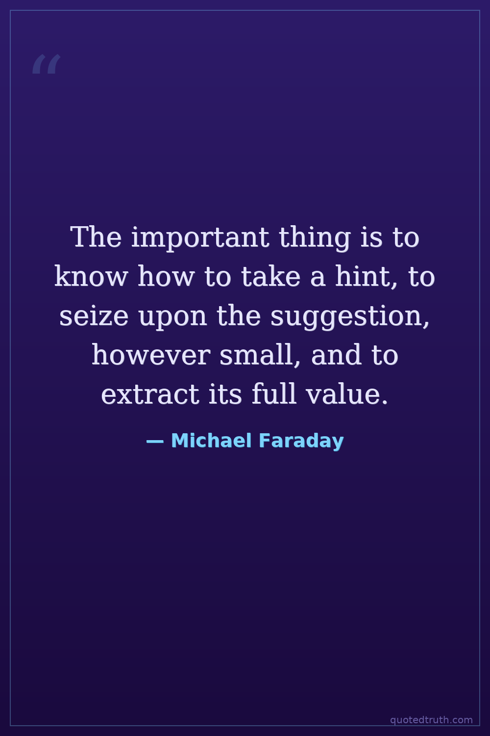 The important thing is to know how to take a hint, to seize upon the suggestion, however small, and to extract its full value.