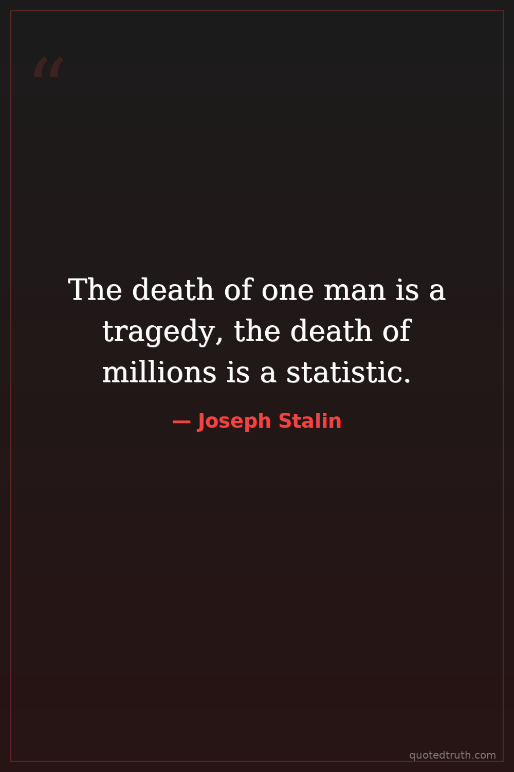 Attributed to Stalin by various sources, including Churchill and others. While widely quoted, direct textual evidence from Stalin's own writings or speeches is elusive and debated. It's considered a summary of his philosophy by many.
