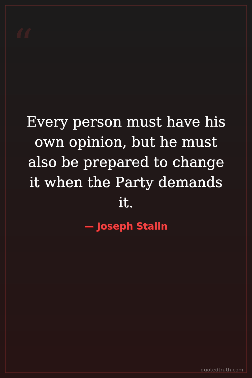 Every person must have his own opinion, but he must also be prepared to change it when the Party demands it.