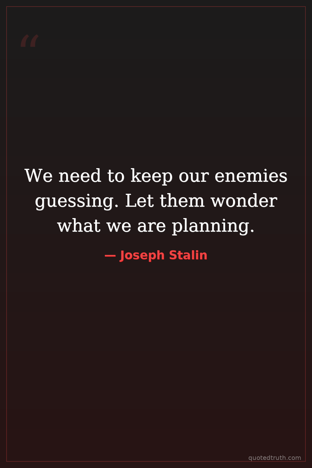 We need to keep our enemies guessing. Let them wonder what we are planning.