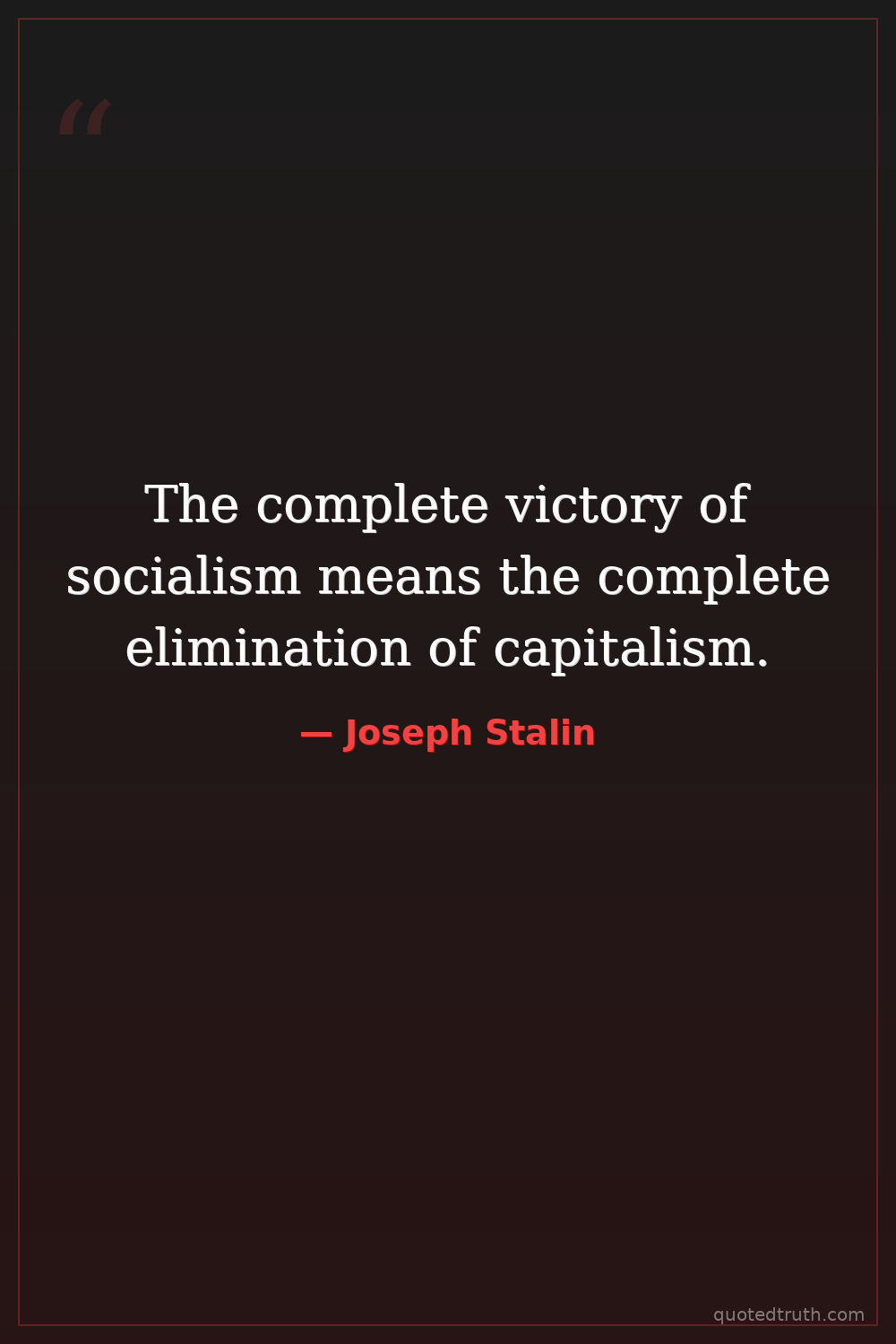 The complete victory of socialism means the complete elimination of capitalism.