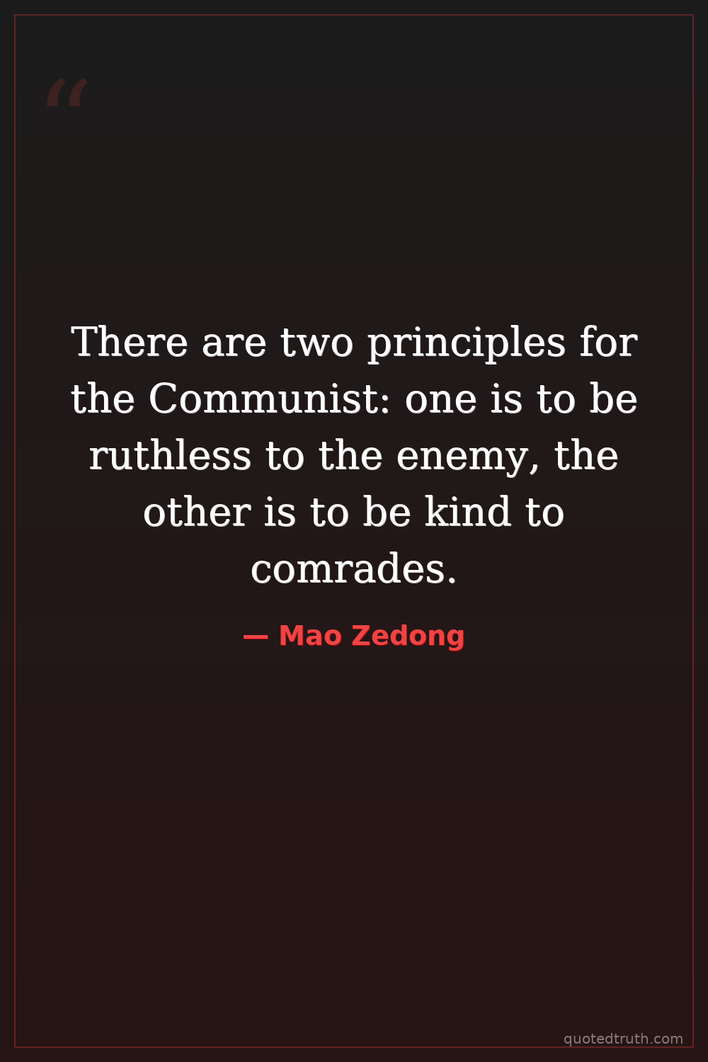 There are two principles for the Communist: one is to be ruthless to the enemy, the other is to be kind to comrades.