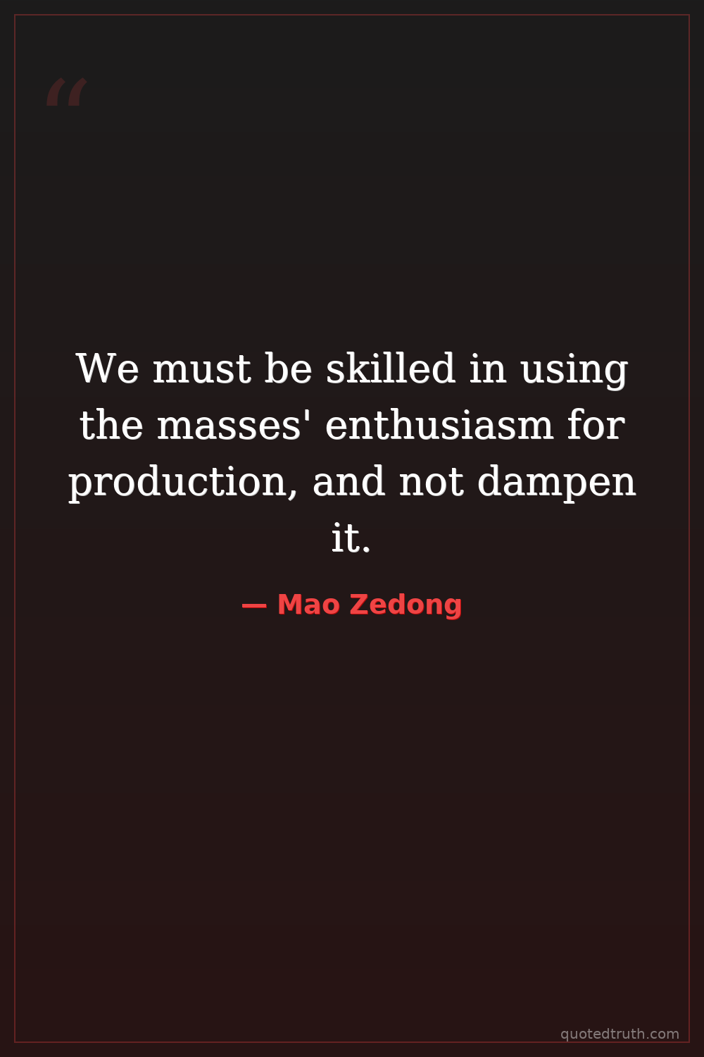 We must be skilled in using the masses' enthusiasm for production, and not dampen it.