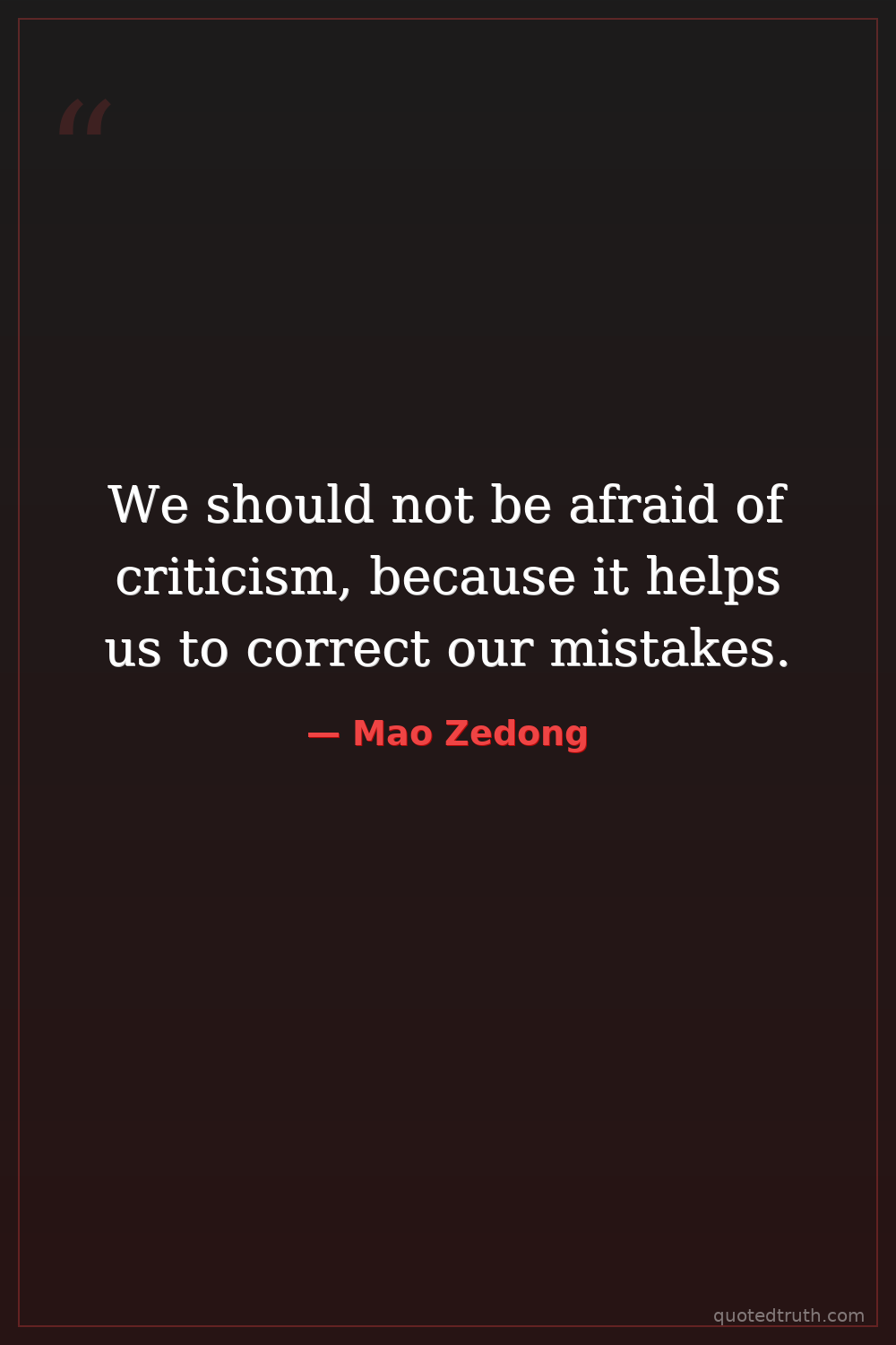 We should not be afraid of criticism, because it helps us to correct our mistakes.
