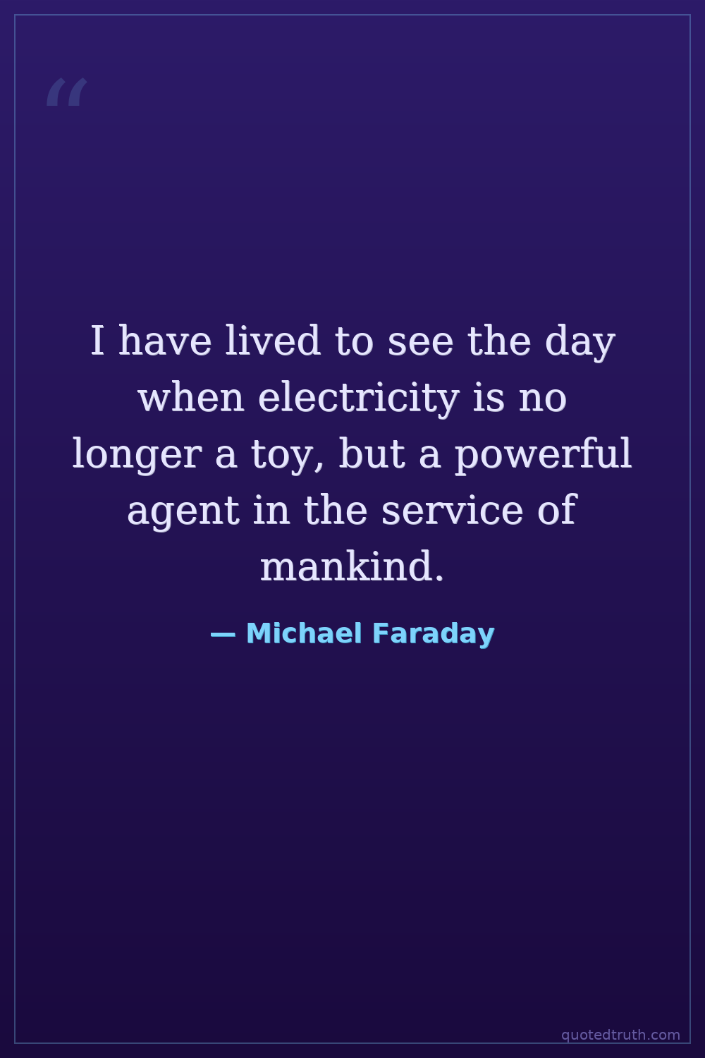 I have lived to see the day when electricity is no longer a toy, but a powerful agent in the service of mankind.