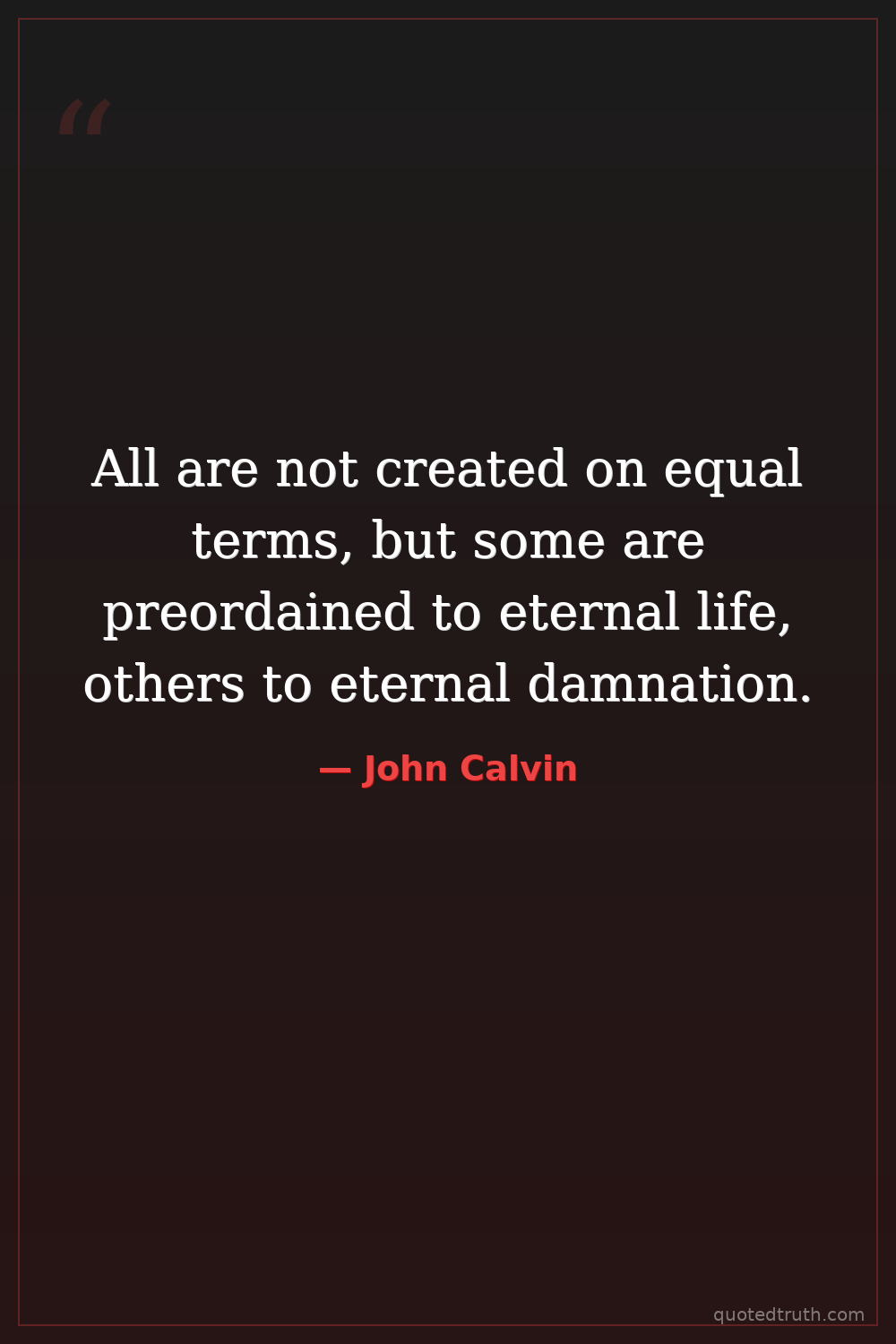 All are not created on equal terms, but some are preordained to eternal life, others to eternal damnation.