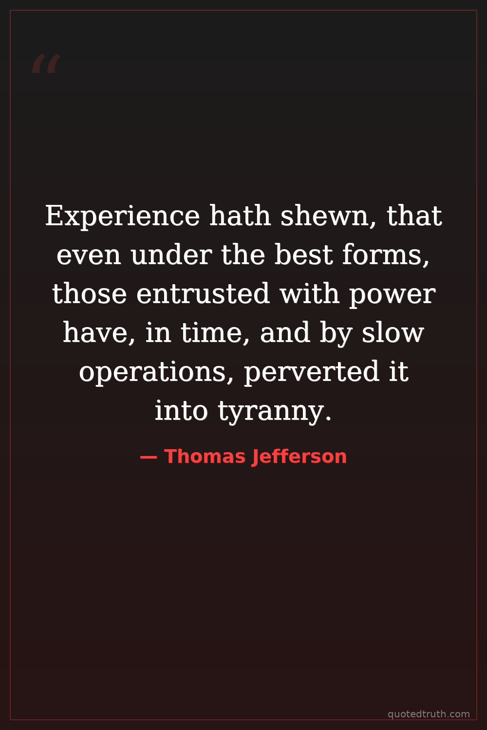 Experience hath shewn, that even under the best forms, those entrusted with power have, in time, and by slow operations, perverted it into tyranny.