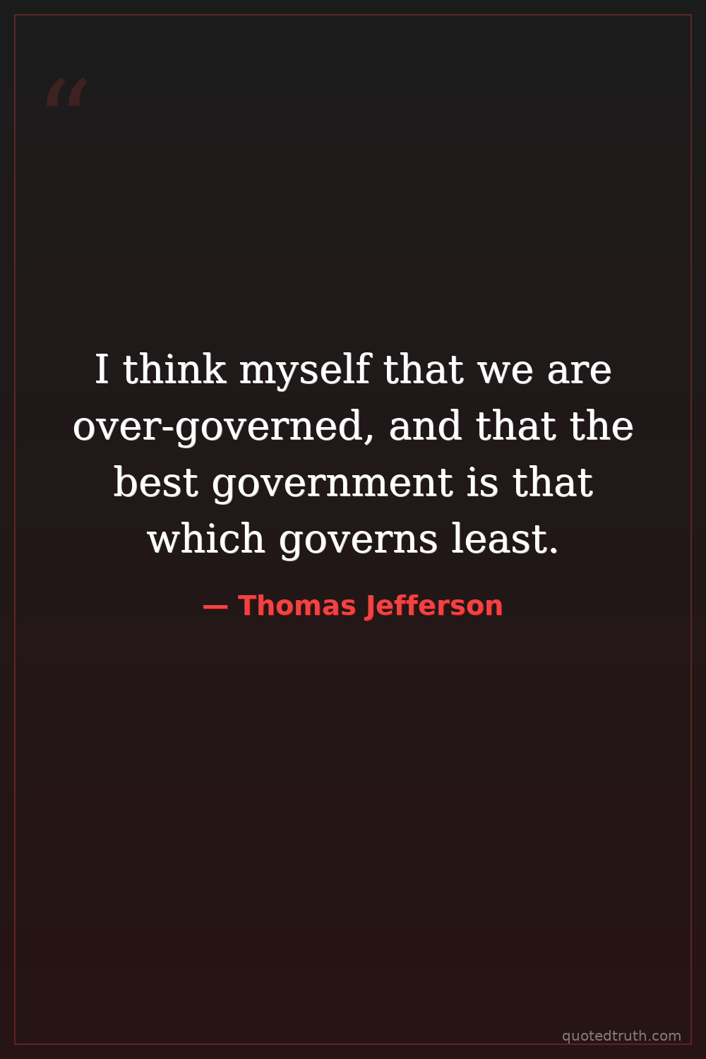I think myself that we are over-governed, and that the best government is that which governs least.