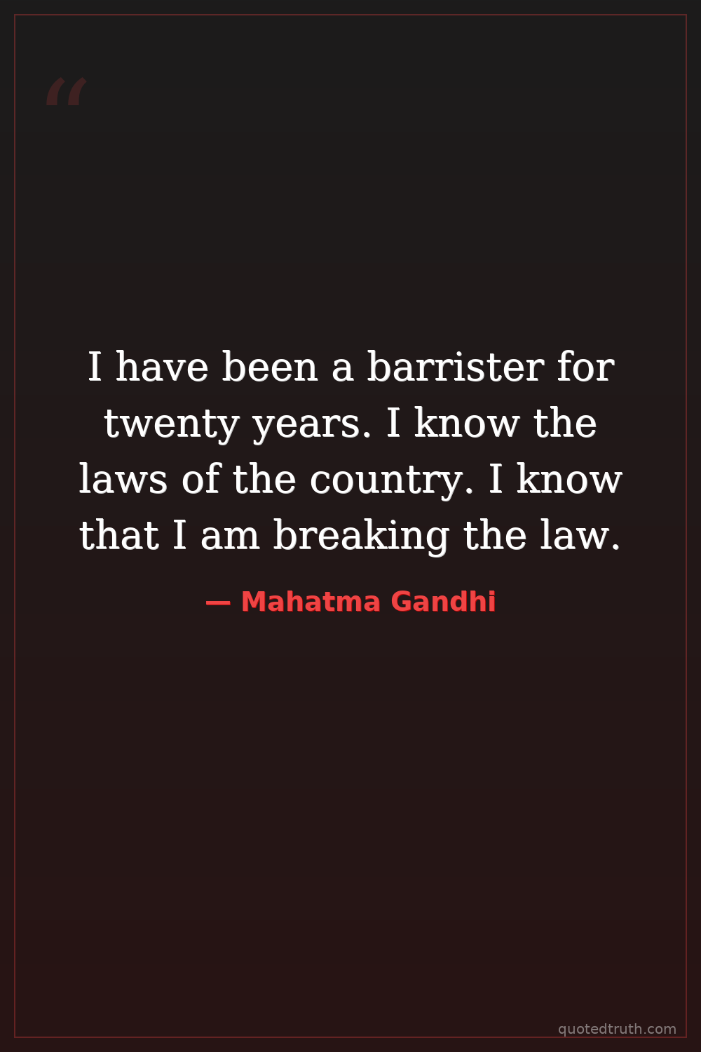 I have been a barrister for twenty years. I know the laws of the country. I know that I am breaking the law.