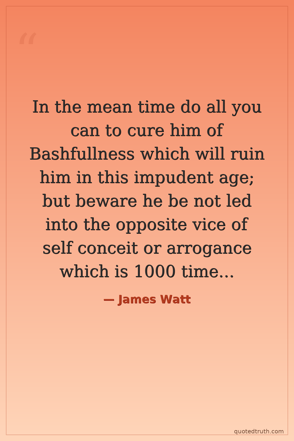 In the mean time do all you can to cure him of Bashfullness which will ruin him in this impudent age; but beware he be not led into the opposite vice of self conceit or arrogance which is 1000 times worse.