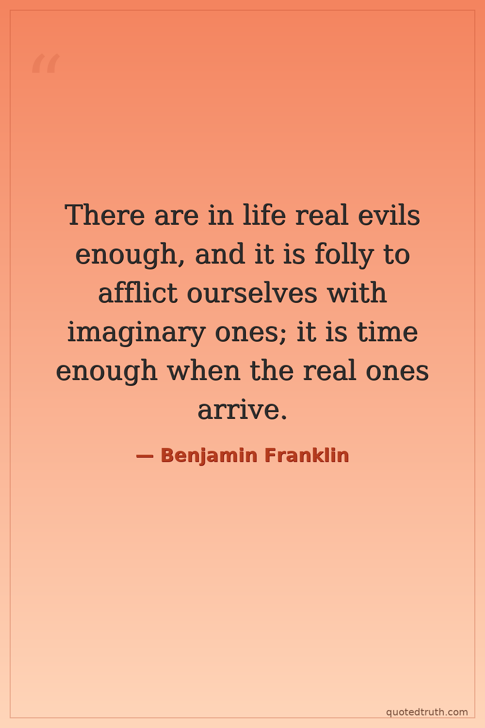 There are in life real evils enough, and it is folly to afflict ourselves with imaginary ones; it is time enough when the real ones arrive.