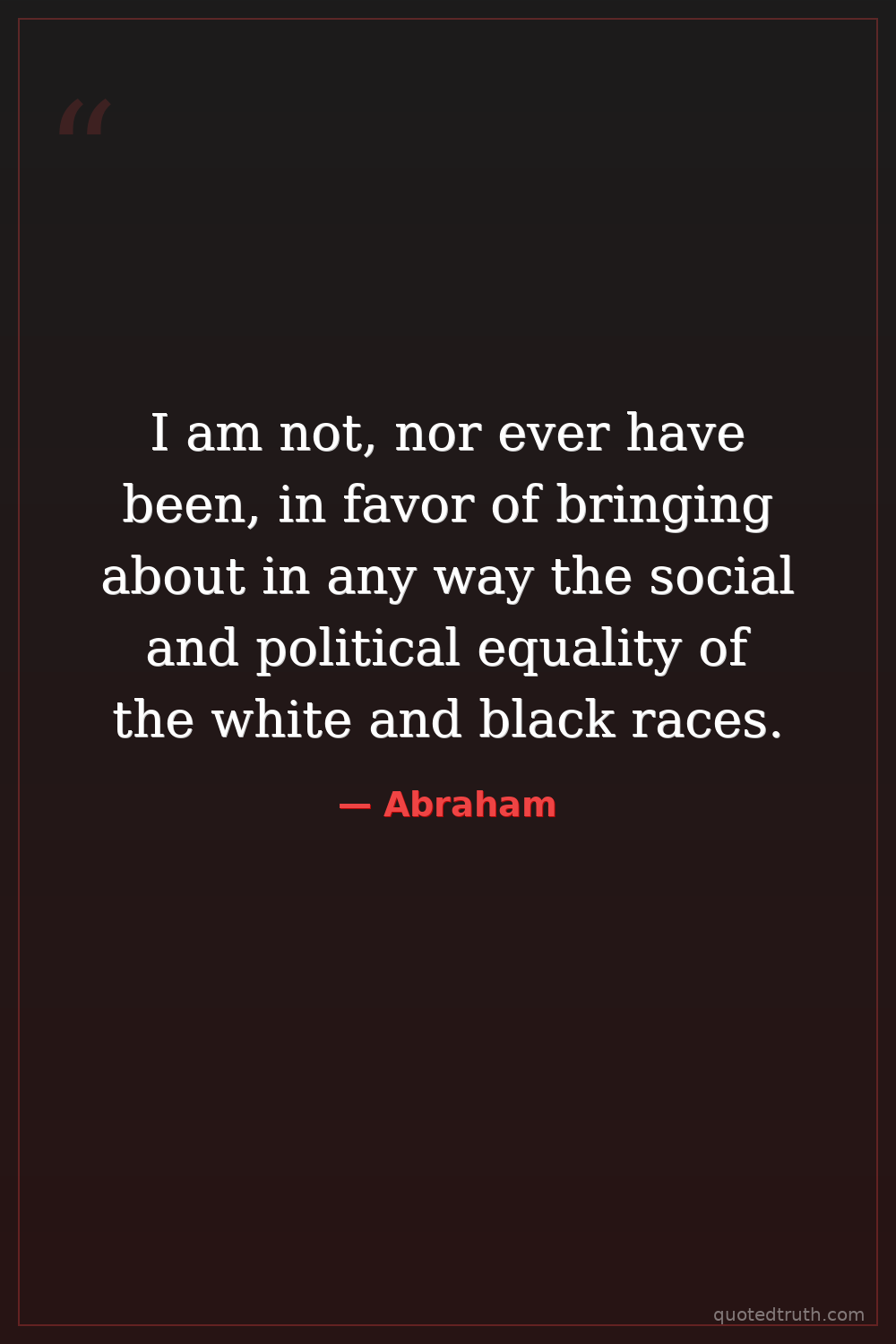 I am not, nor ever have been, in favor of bringing about in any way the social and political equality of the white and black races.